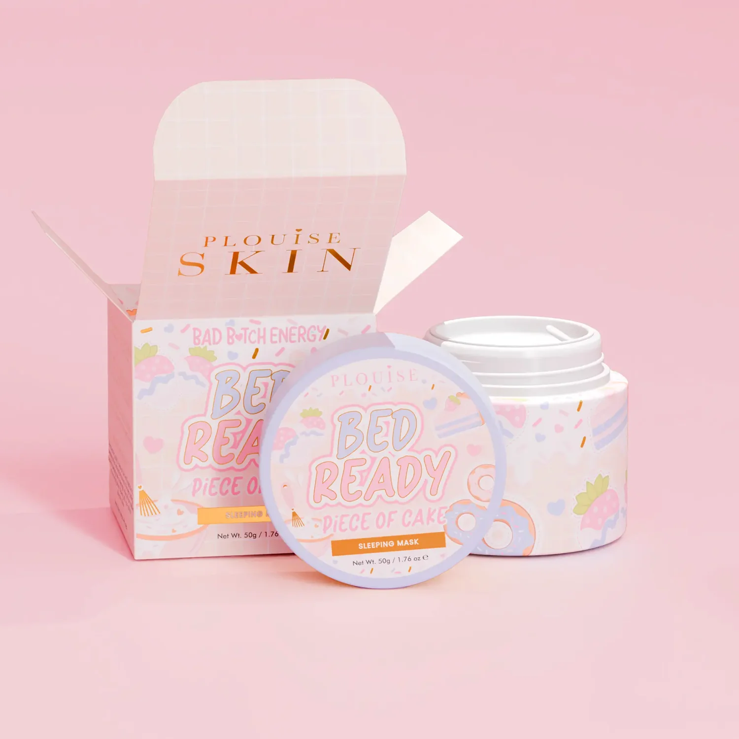 Your bedtime beauty bestie has arrived! Bed Ready is the dreamy gel-textured sleeping mask that pampers your skin while you sleep. Packed with hydration, calming botanicals, and a dash of fun, it turns your nighttime routine into a relaxing slumber party for your face. Available in four sweet scents - Piece of Cake, Calorific, Mixed Fruit, and Fizzy Pop - this mask is a dessert for your skin!