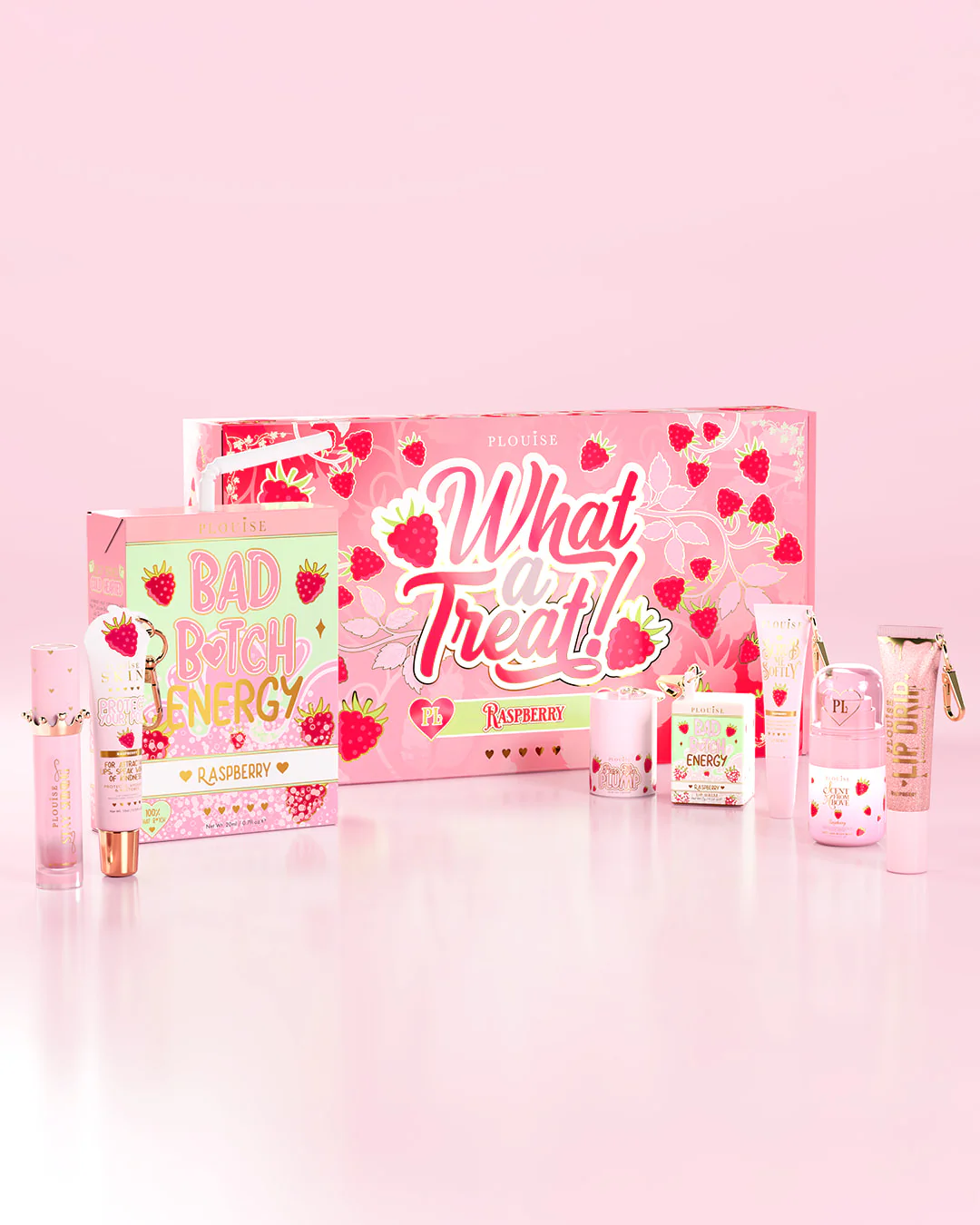 Back by popular demand and better than ever, the What A Treat! Bundle - Raspberry returns in its own exclusive box, packed with fruit-inspired beauty and unapologetic Bad Bitch Energy. This is your all-access pass to sweet scents, glossy lips, and feel-good self-care, all wrapped up in packaging that feels just as indulgent as what’s inside.